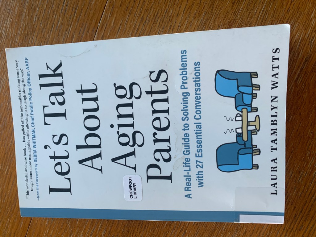 If you are watching all the Back to School ads it might be time for thinking about how you can prepare for the next season. I have been skimming through a book called “Let’s Talk About Aging Parents.” It’s by Laura Tamblyn Watts, a Canadian, who is the CEO of CanAge, Canada’s national seniors’ advocacy organization. It was published in 2024 so is up to date.